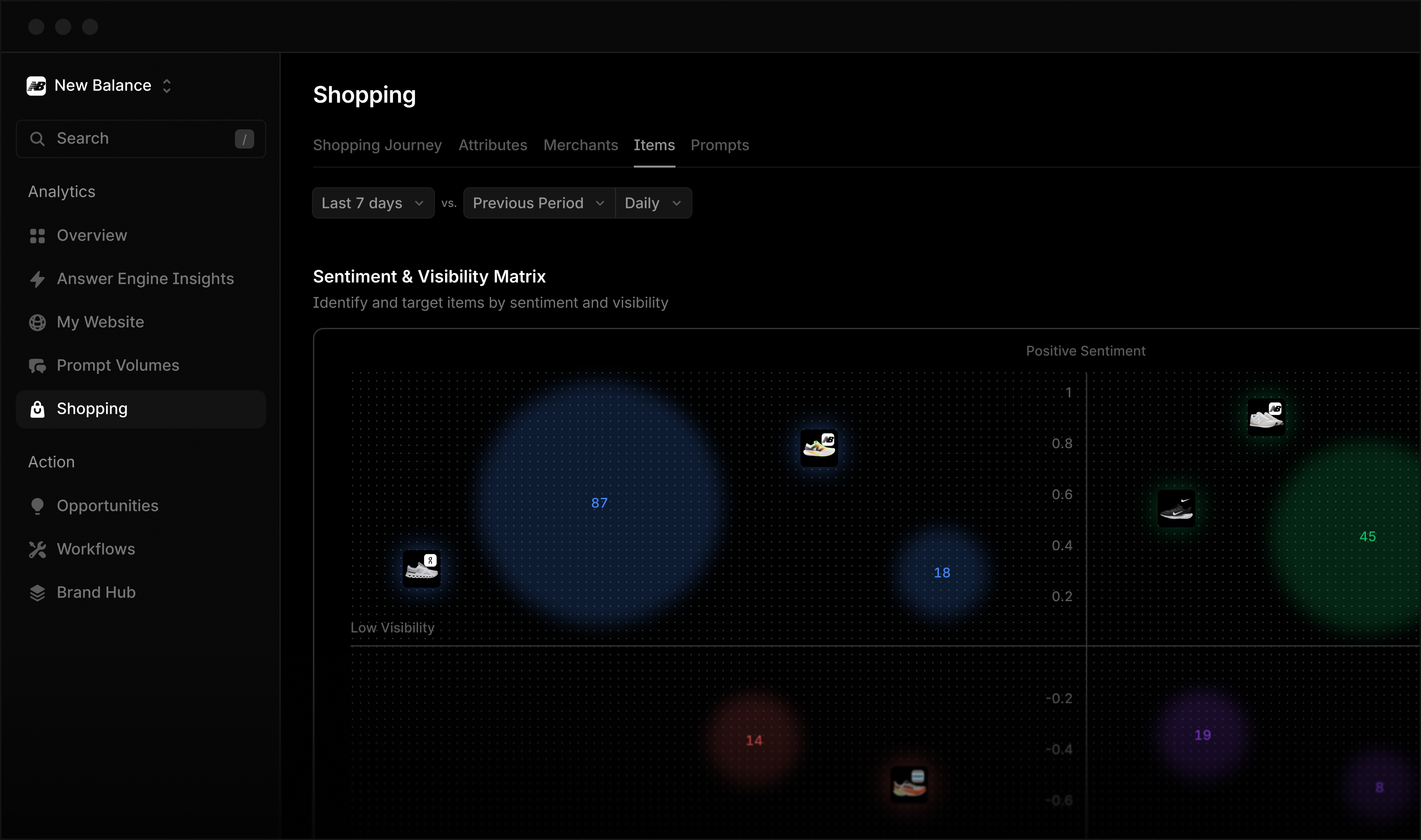 Identify and target products by sentiment and visibility to optimize your AI shopping presence